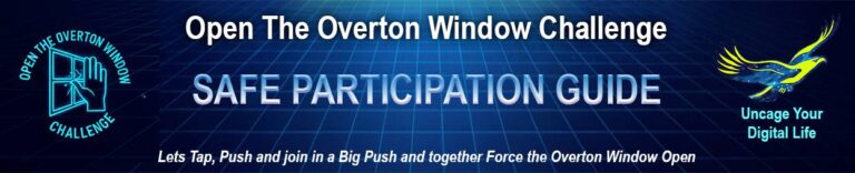 We provide a Challenge The Overton Window Participation Guide on how to safely and effectively assert your right to Freedom of Speech without “breaking the window”. DFA does not promote or condone Forcing the Window Open where it involves breaking any local laws or the rules set by private platforms as part of their terms of service.